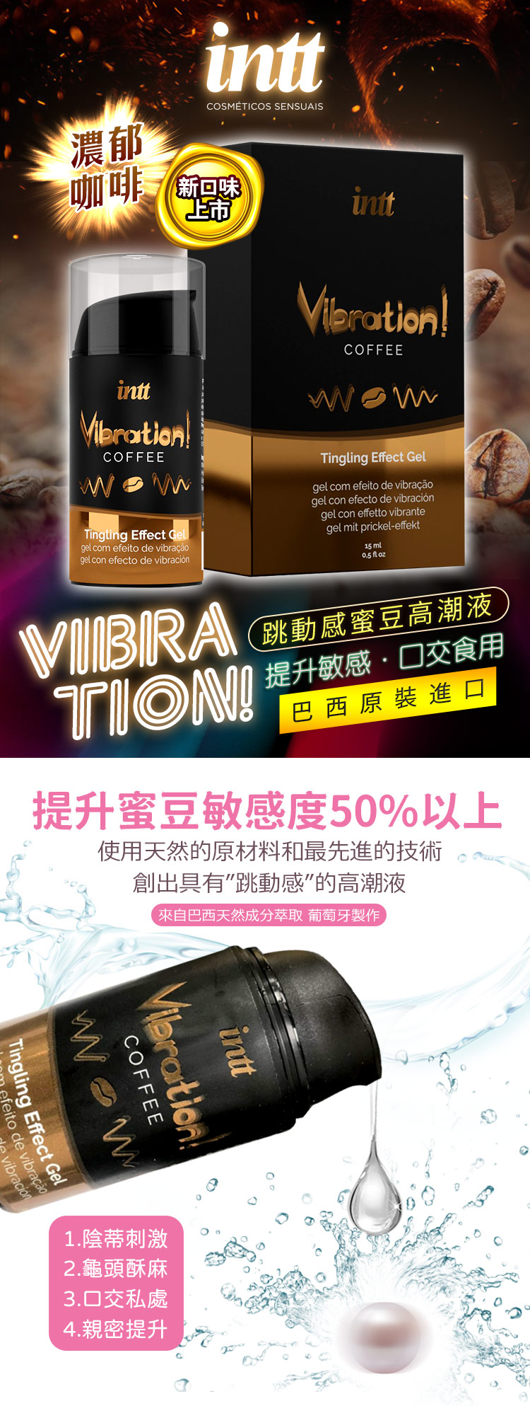 .主商品:巴西Intt Vibration 跳跳糖感 爆跳式高潮液 15ml (咖啡 可口交)
