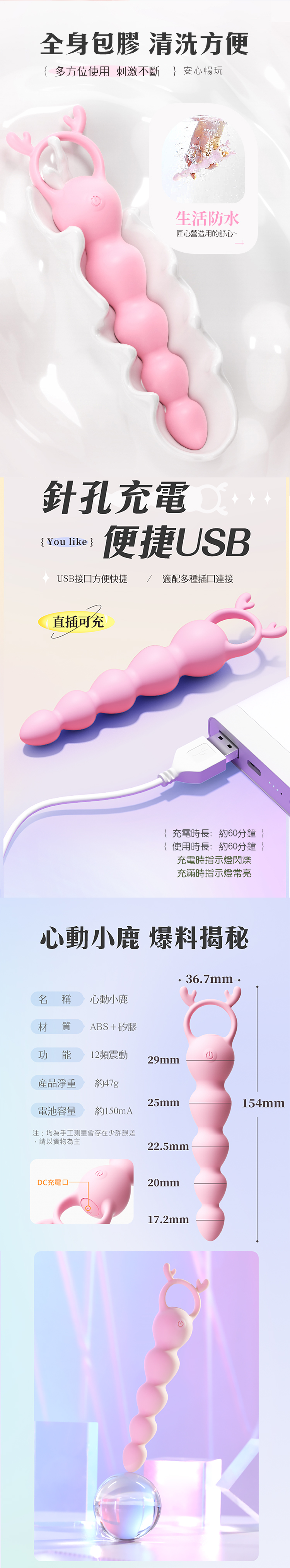 商品名稱:謎姬|萌鹿激震拉珠|拉環肛塞
