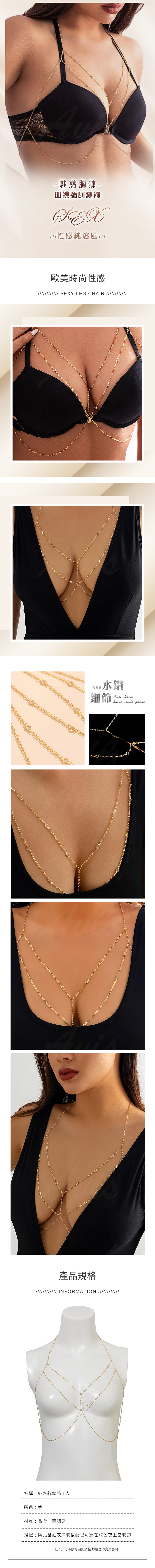 品名:魅惑胸鍊|曲線強調鏈飾 金