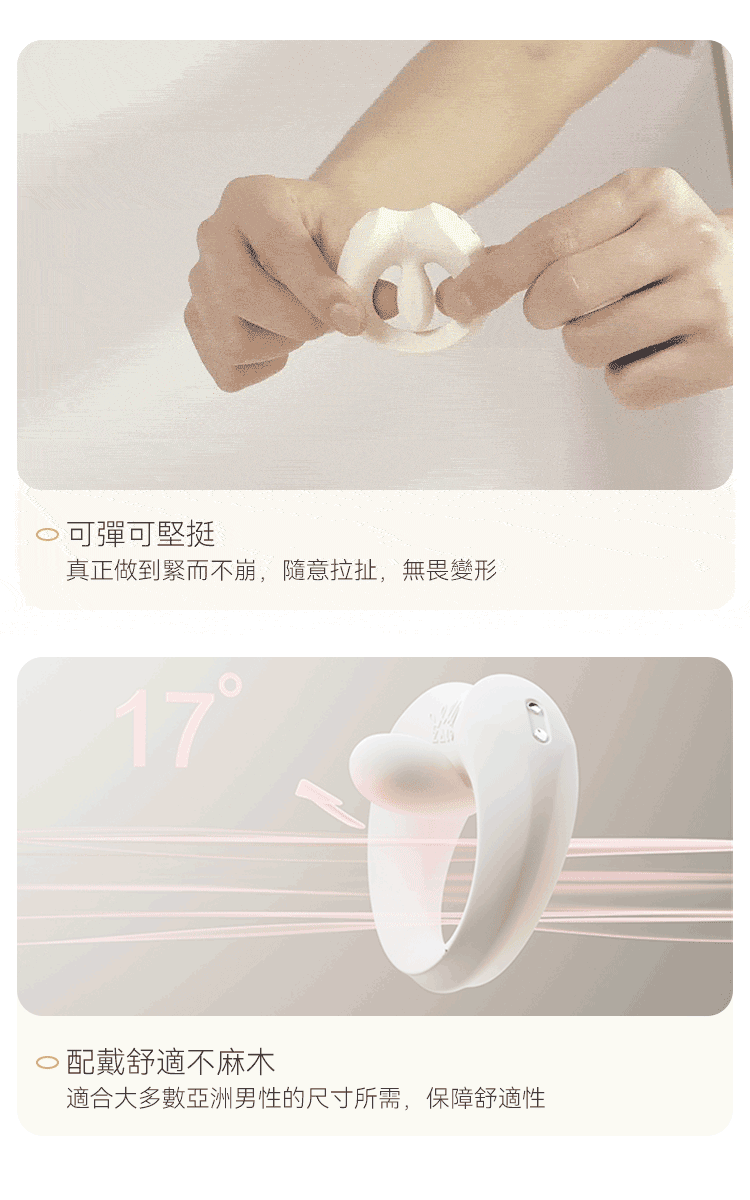 上翹立體環頭,精準點震敏感位置,同步刺激對方豆豆,讓每一下都酥麻共鳴。