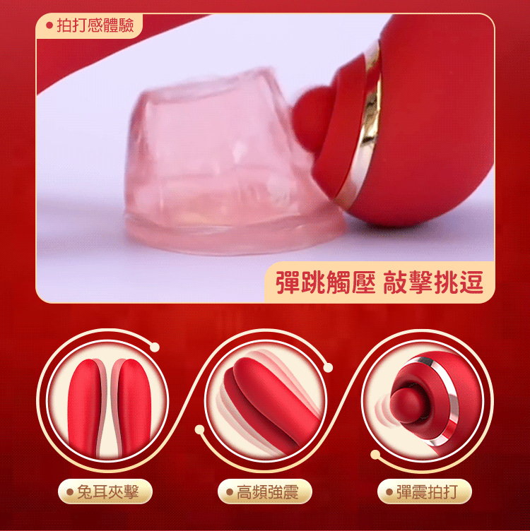 兔耳造型柔韌貼合乳頭與豆豆,主體深入蜜點震顫不止,結合負壓吮吸快感,讓妳身體深處每一寸都被愛撫挑逗!