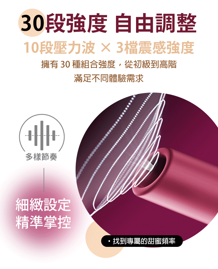 10 段壓力波 × 3 檔震感強度:多樣變化,滿足不同渴望