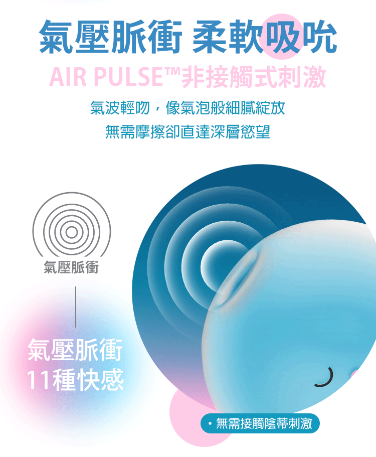 11 段吸吮頻率|AIR PULSE 氣壓波動,非接觸式刺激,溫柔卻深入。